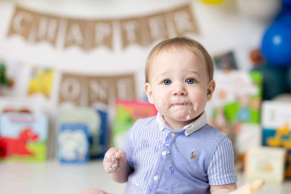 If you’re searching for a Chapter ONE Cake Smash Canton GA, this sweet first birthday session was absolutely one of my favorites. When mom told me she wanted a “Chapter ONE” theme filled with children’s books, I was instantly all in.